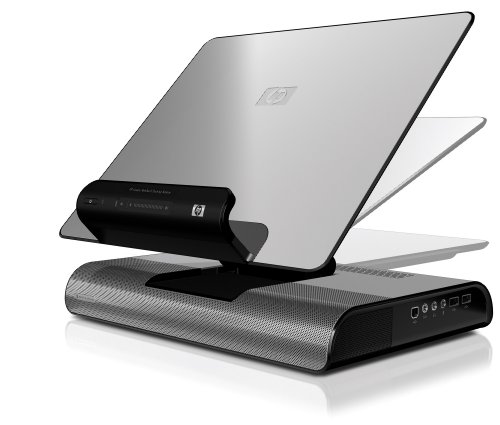 Connectors and ports: Expansion Cable Connector (connects to notebook's Expansion Port), USB 2.0 Ports (6), Microphone (audio-in) Jack Headphone (audio-out) Jack, PC Port (for connecting secondary notebook), External Monitor Port (VGA), S/PDIF (Sony/Philips Digital Interface) Digital Audio Jack (RCA type) RJ-45 (network) jack, Power Connector, Power connector for HP Personal Media Drive (HP Personal Media Drive is optional and sold separately), Consumer IR for use with an optional HP Mobile Remote Control (sold separately) Adjust your notebook to the best viewing height Stay connected to everything: power, peripherals, Internet, etc, via a single cable Get excellent sound with the powerful, integrated Altec Lansing 2.1 speaker system Connect an MP3 or CD player to the docking station's auxiliary audio-in port Back up data on the integrated HP Media Drive storage bay: just connect our Personal Media Drive or Pocket Media Drive directly to the docking station Connect a secondary notebook via USB, then share USB peripherals connected to your docking station Charge USB devices even when your notebook is disconnected; the docking station supplies six powered USB ports Use the ports: VGA for connecting an external monitor, Ethernet, multiple audio outputs, microphone, and consumer IR for a mobile remote control (sold separately) Plug and play: you need no drivers or software for setup Compatibility: HP Pavilion dv4, dv5, dv6, dv7, dv2000, dv6000, dv9000, tx2, tx1000, tx2000 series; HP HDX 16, 18 series; Compaq Presario CQ45, V3000, V6000 series