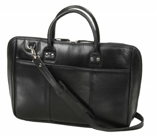 2455-Black Features: -Feather-weight.-Removable and adjustable shoulder strap.-Leather pull tabs.-Padded handles.-Full-length open pocket with snap button closure.-Interior features a 4'' gusseted main compartment with fully padded built-in laptop sleeve.-Fits up to 17'' screen laptop.-One full-length zipper pocket.-Five card slots, two pen holders, one open pocket perfect for eyeglasses / sunglasses.-One open pocket perfect for calculator / cell phone / mp3 player. Dimensions: -Gusset dimensions: 5.5'' H x 4'' W x 1'' D.-Pocket gusset dimensions: 5.5'' H x 3'' W x 1'' D.-Dimensions: 12'' H x 16.5 - 19'' W x 4'' D.